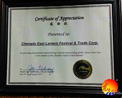 自貢燈貿(mào)集團股份有限公司、四川藝思特彩燈文化傳播有限公司主辦的“2016世界之光——彩燈嘉年華”跨年燈展,于當?shù)貢r間2017年1月29日在美國亞利桑那州首府菲尼克斯(鳳凰城)順利落下帷幕。成都市委副秘書長、印第安納州州長 Burns Mike及當?shù)卣獑T出席閉幕式并代表州政府對本次燈展頒發(fā)特令嘉獎。