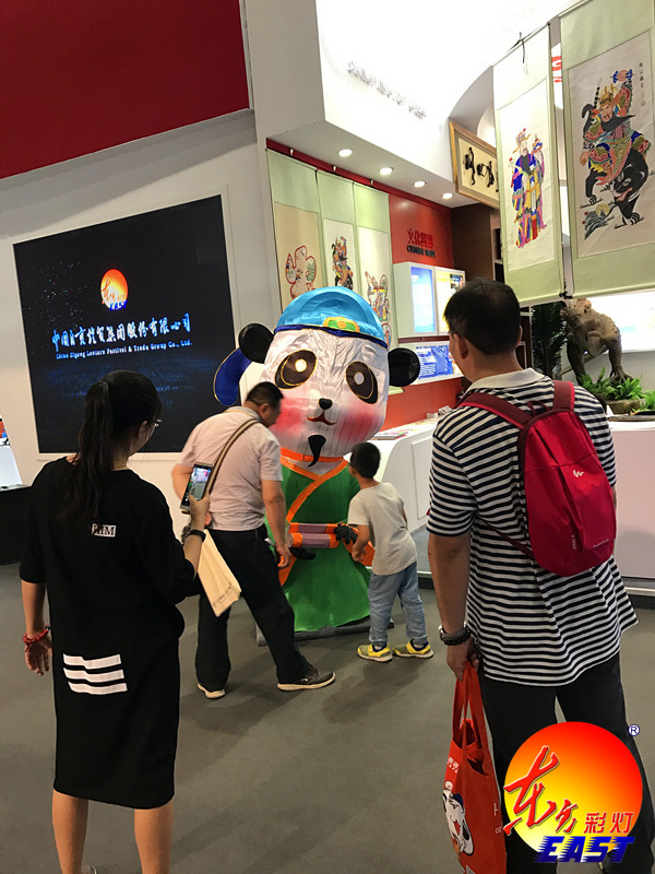 四川展區(qū)文化貿(mào)易“走出去”重點企業(yè)-自貢燈貿(mào)集團股份有限公司向客商展現(xiàn)了美國“休斯頓彩燈夢幻嘉年華”、“菲尼克斯東方彩燈——點亮世界”、“第49屆成都國際熊貓燈會”的大氣恢弘、美輪美奐。造型逼真,憨態(tài)可掬的燈會吉祥物“嘟嘟”更是成為展區(qū)亮點。