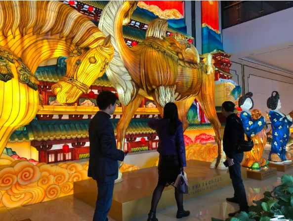 調研組一行參觀了東方彩燈(出口)基地,觀摩了燈貿(mào)集團將自貢彩燈與唐三彩兩種非遺技藝的全新融合的“唐風華韻”展品。集團執(zhí)行總裁陶建軍向調研組一行介紹了燈貿(mào)集團發(fā)展狀況,以及公司全新彩燈產(chǎn)品。公司為促進彩燈產(chǎn)業(yè)的創(chuàng)新性轉化和創(chuàng)造性發(fā)展,推出了文化+創(chuàng)意+科技全新彩燈產(chǎn)品,產(chǎn)品深度挖掘文化底蘊動線,變被動式觀燈為主動式沉浸、行浸觀燈,燈展的供給創(chuàng)新能力和消費場景獲客能力得到了較大的提升。
