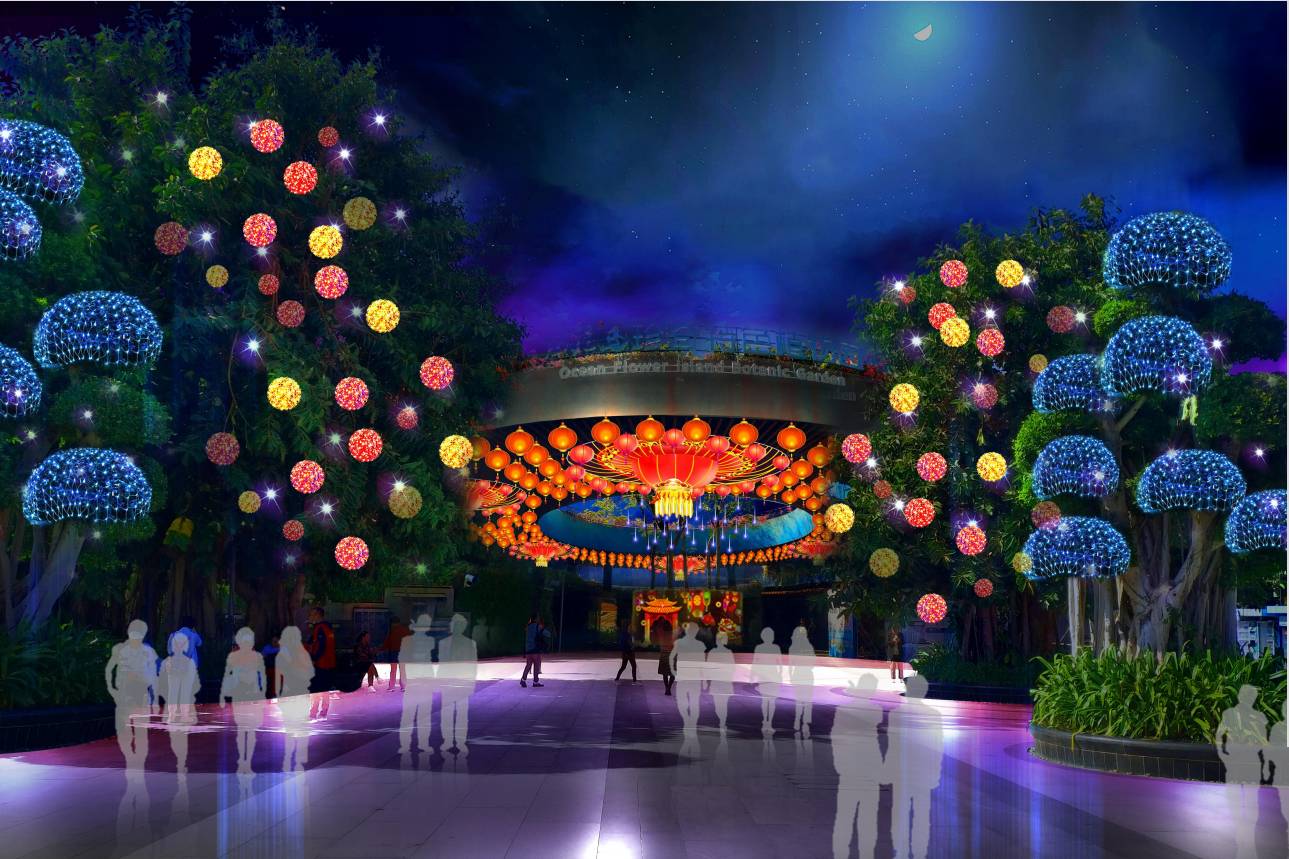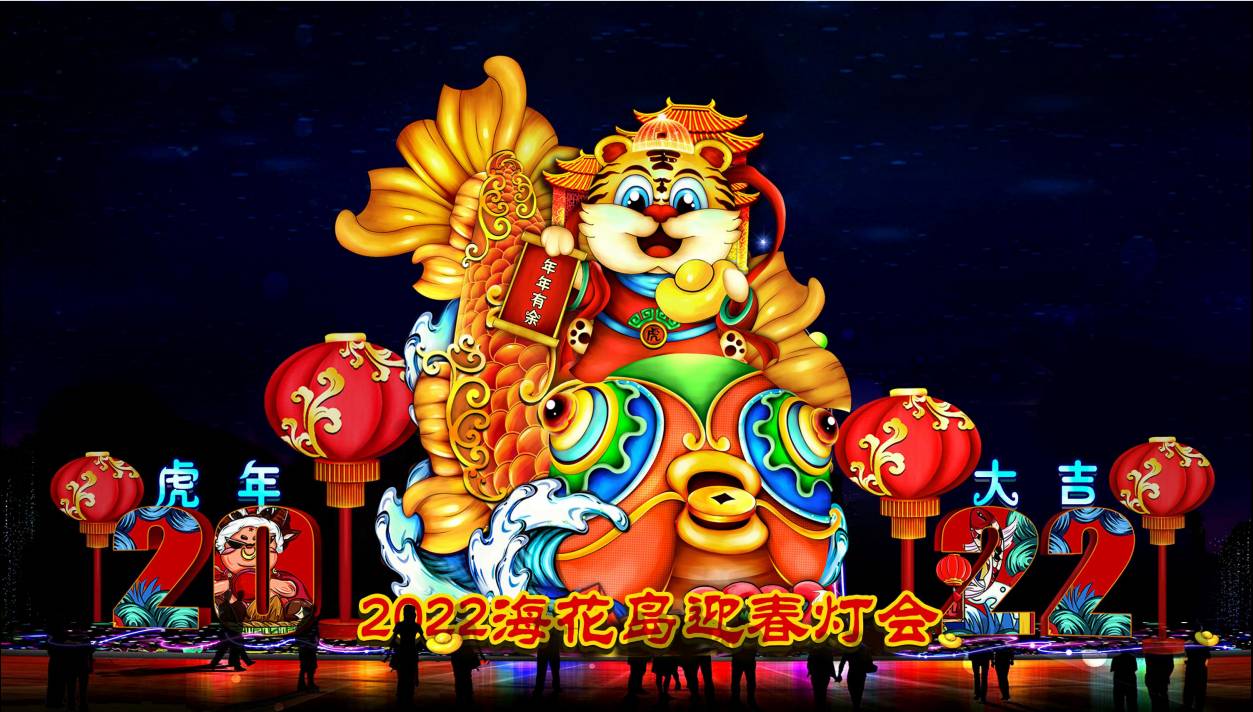 燈貿(mào)集團創(chuàng)意、設(shè)計、制作的?;◢u新春燈會以虎年生肖文化為主題,展現(xiàn)椰風(fēng)海韻、喁喁鳥語,花蕊嫣然的旖旎景象,營造“面朝大海,春暖花開”夢幻般的彩燈體驗場景。