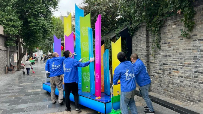金沙遺址是距今3000年前古蜀王國的都邑所在地,是成都城市史的開端。而寬窄巷子所在的少城地區(qū),則是秦并巴蜀后成都城的中心區(qū)域。從秦漢到清代,這一區(qū)域奠定了“老成都”的布局基礎。此次古蜀文明彩燈光影藝術展的舉辦,讓攜帶著古蜀文化基因的金沙面孔與秦漢、隋唐、清代的成都相遇,以藝術化的形式向游客呈現(xiàn)“創(chuàng)新,創(chuàng)造,優(yōu)雅,時尚,樂觀,包容”的天府文化。